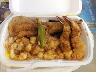 A new place opened at that cursed spot at the Santa Monica Mitsuwa food court! This time, it is tempura bowl specialist from Tokyo, Tendon Hannosuke. According to reviews on tabelog, there is always a line at the Nihonbashi location on weekends. We're pretty lucky here in Los Angeles! The storefront is quite attractive. They have a window for you to look at the tempura making process.